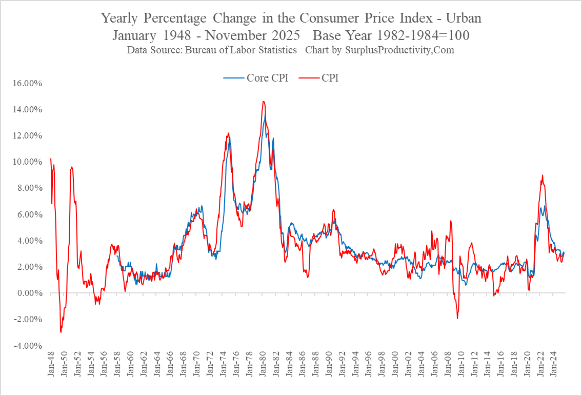 By now, chances are you’ve already been made more than aware that yesterday’s release of the November Consumer Price Index was a bit obtuse. While the November data itself wasn’t necessarily the issue, it was the fact that most of the October data was left unfilled, leaving a rather patchy report that was generally hard to discern. The Bureau of Labor Statistics had forewarned of such an event1 but seeing it come to fruition and actually dealing with the consequences is still something else. As such, we decided to update our normal slew of CPI charts and comment on them individual rather than delve into a long treatise should the numbers change or be replaced as time goes on. Either way, we still see quite a bit of price volatility (not price inflation) in the data itself which means that the Fed still has considerable room to move lower before achieving any sense of real neutrality in this surplus productivity dominated economy.